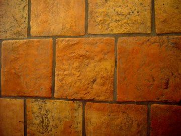 Italian Terra Cotta Tiles: Sample below from current stock. 2500 sq feet available in this size. 6x12". Other sizes in stock: 12x12, 6x6, 4x4, 20x20, 6x19.5, shape tile. |